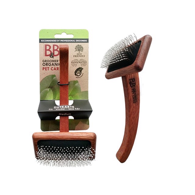 Beskrivelse. – Til udredning af filt og knuder. – Til løse hår. Underuld eller også ved fældning. – Skånsom karte med vinklede tænder og beskyttende dutter. Kan med fordel anvendes sammen med BB Fleksibel Karte – Se relaterede varer Materiale anve