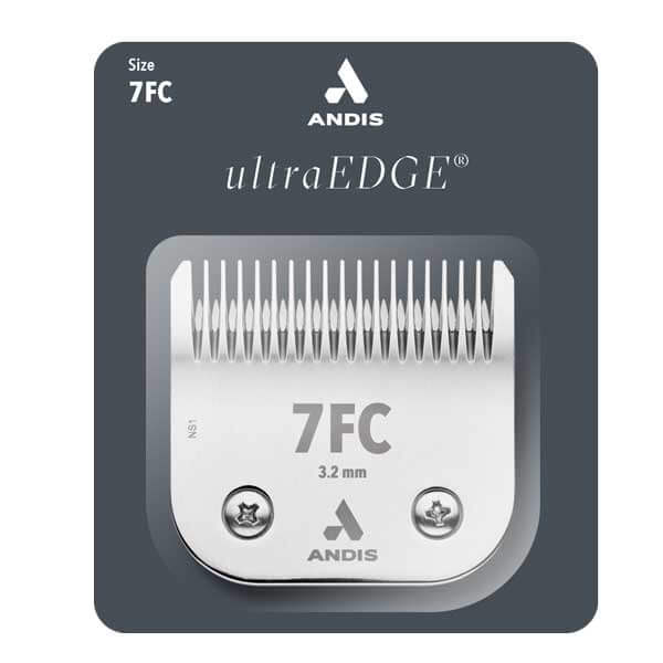 Andis Ultraedge Skær 7FC Efterlader 3.2 mm Produceret i karboniseret stål som sikrer en lang levetid Chrome finisk som beskytter mod rust Klikkes nemt og ubesværet på klippemaskinen Kan anvendes til følgende klippemaskiner Anids AG. AGC. AG
