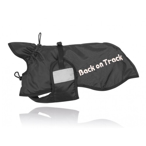 Back On Track dækken syet af kvalitets polyester. Som er både vandafvisende og åndbart. Foret hundedækken med Back on Tracks infrarøde reflekterende varmeeffekt. Dækkenet er sort med reflekser på begge sider. Fronten af dækkenet kan reguleres for