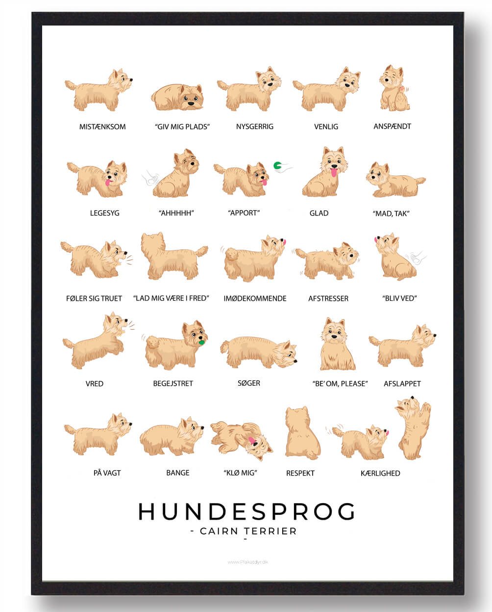 Produkt id. Cairn-terrier-hundesprog-plakat