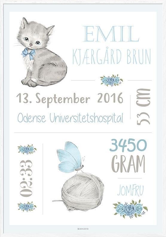 Yderlige produktinformationer. Produkt id. Dåbstavle-med-kat-personlig-fødselsplakat-til-den-lille-dreng