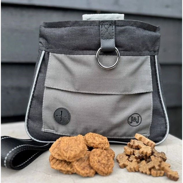 Beskrivelse. – Alsidig bæltetaske er designet til både træning og gåture. – Godbidstaske med fokus på funktionalitet og brugervenlighed. – Har to store. Adskilte lommer til godbidder. – Let, at betjene med n hånd. – Justerbar pasform. Kan bæres i t