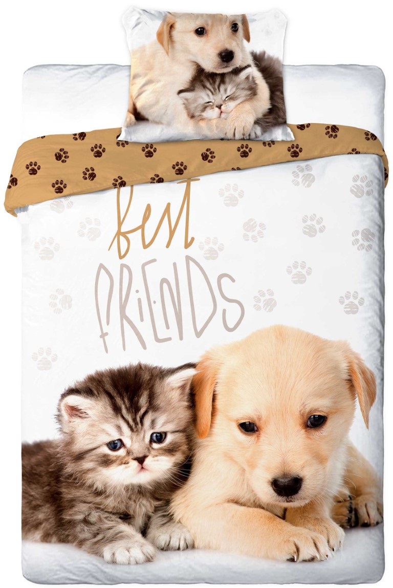Produkt id. Hund-kat-bedste-venner-sengetøj-140 ×200-100-procent-bomuld 5907750556205
