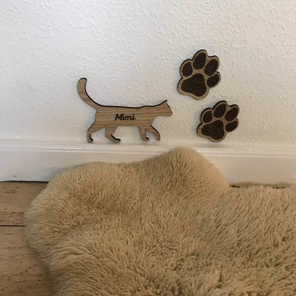 Navneskiltet er skåret i 6 mm egetræsfiner. Skiltet er 20 cm bredt. Husk, at skrive ønsket navn her.Skriv XXX, hvis du ikke ønsker navn graveret på skiltet