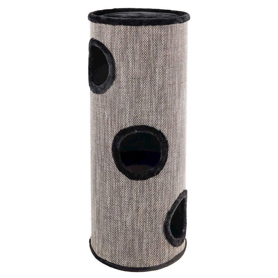 Beskrivelse. – Kradseflade lavet af robust vævet stof og plysbetræk- i 3 etager sammenhængende niveauer – Polstret liggepladsHøjde. 100 cmHullerne til hulen. Ø 15 cmHuller imellem etagerne. Ø 17 cmFarve.Sort