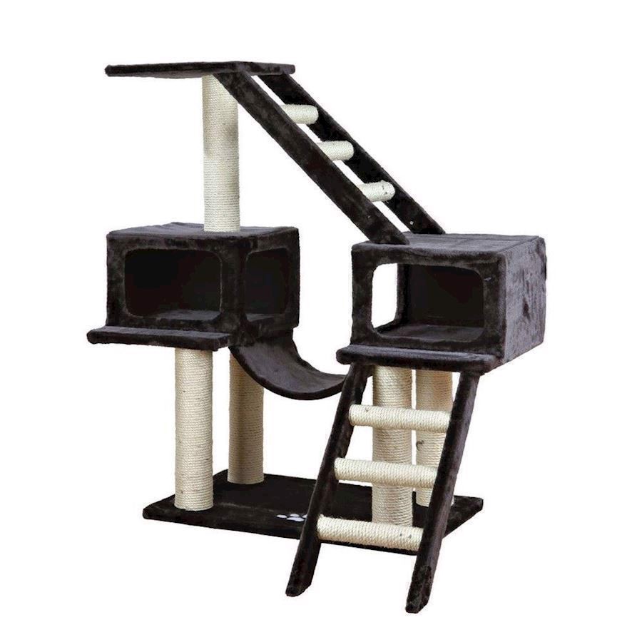 Et rigtig lækkert stort kradsemiljø med stiger og huler med plysbetræk. Sistalstrammer og hængekøje i plys. Et kradsemiljø der fremmer leg. Aktivitet. Hygge og ikke mindst krads. Farve. Beige eller også koksgrå Mål. – Bundplade 70 x 45 cm –