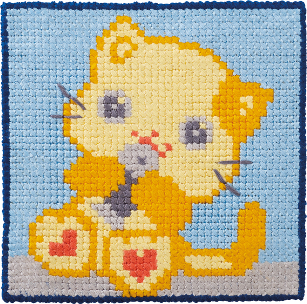 Produkt id. Permin-broderi-påtegnet-broderikit-til-børn-med-kat-9374