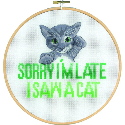 Produkt id. Permin-broderikit-sorry-late-kat-20cm 5702859221234