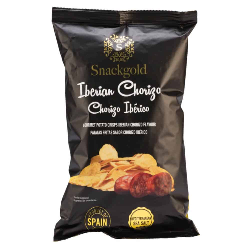 Yderlige produktinformationer. Produkt id. Snackgold-gourmet-chips-chorizo-125gr Farve. Guld