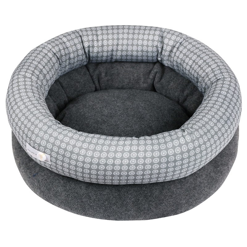Wouapy ROMANCE Katteseng tilbyder din kat et blødt og trygt hvilested. Hvor kvalitet og komfort er i fokus. Den rundformede seng i gråt filt med et delikat hvidt blomsterprint på indersiden skaber en indbydende atmosfære. Der passer til de fleste katte i